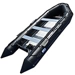 Features: durable marine plywood transom for outboard motor, double layers of fabric at the bottom of the tubes This allows 2.4mm of lower tube protection from sharp rocks and abrasive sands. deep V-keel with rub-strake protection for easy planing . five individual chambers, one-way drain valve with plug, built-in oarlock for easy rowing, transom stainless “D” lifting rings, eleven interior tie down stainless steel D-ring on tubes, two large tow stainless steel D-rings on bow and rear tubes